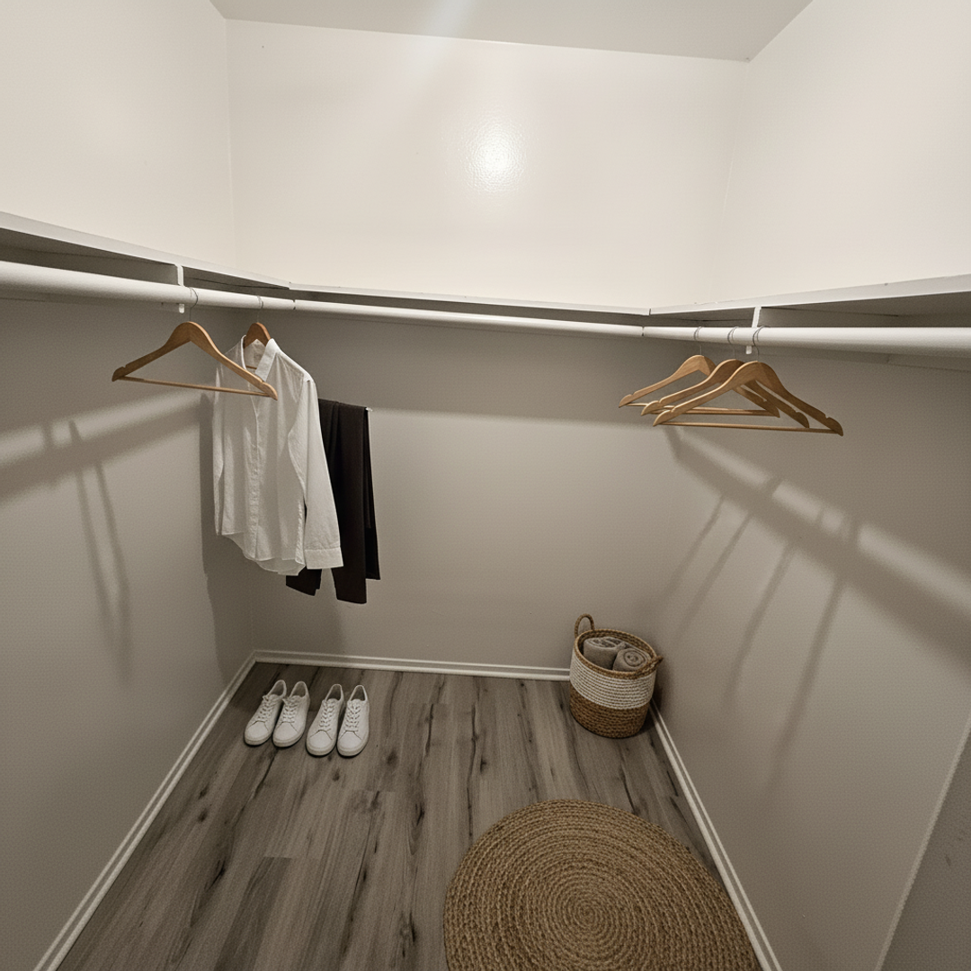 - Oversized bedroom boasting a large walk-in closet for all your wardrobe needs